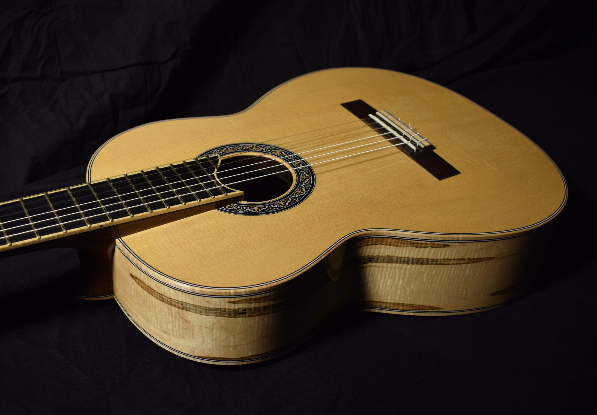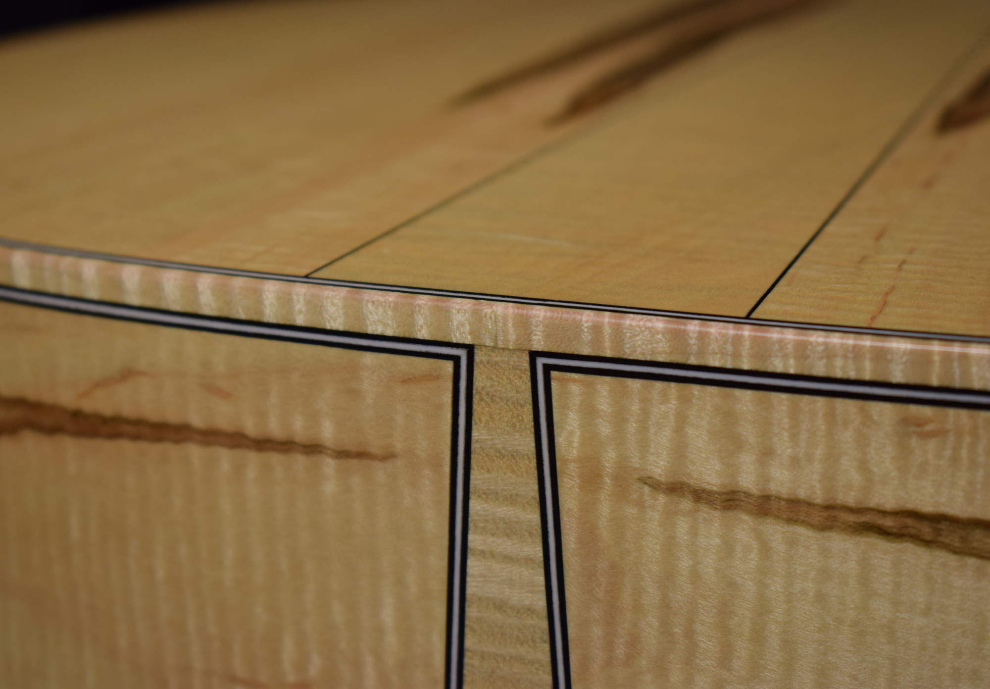 Three pieces with a curly maple binding and some Gilbert Tuning Machines