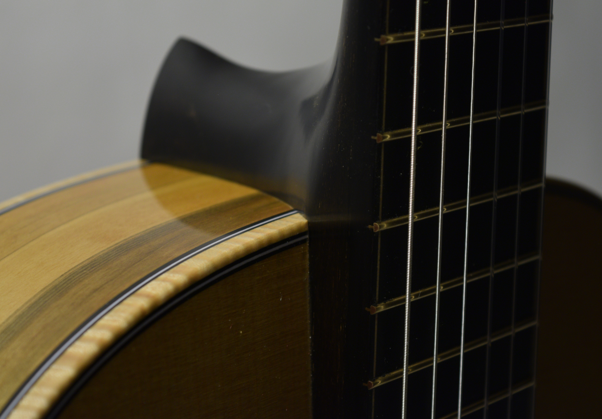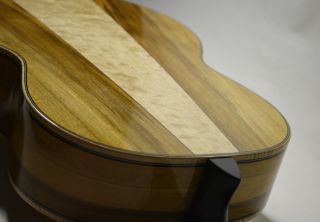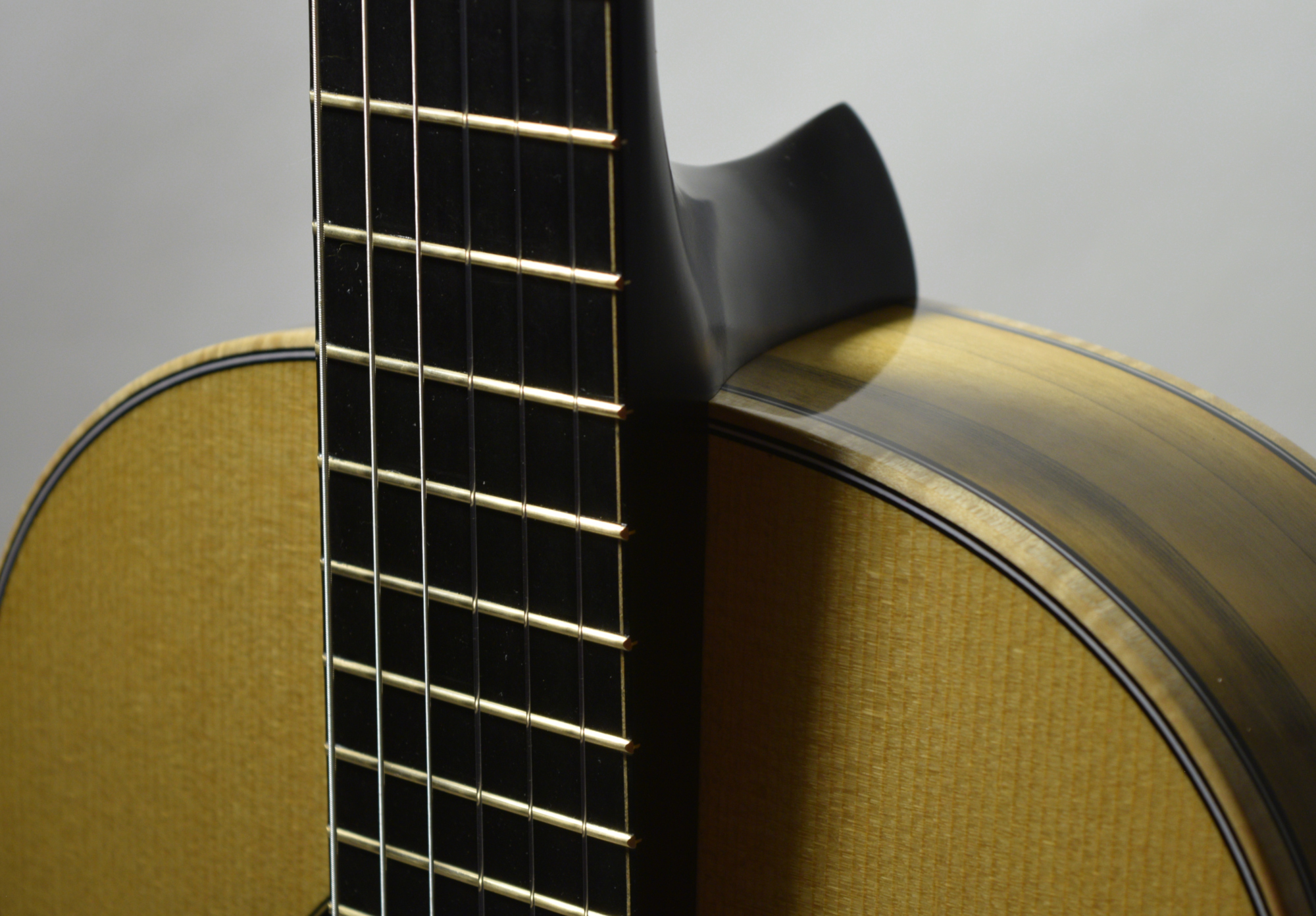 I used a smaller Gold Evo fret and outlined fretboard with an elegant maple purfling.