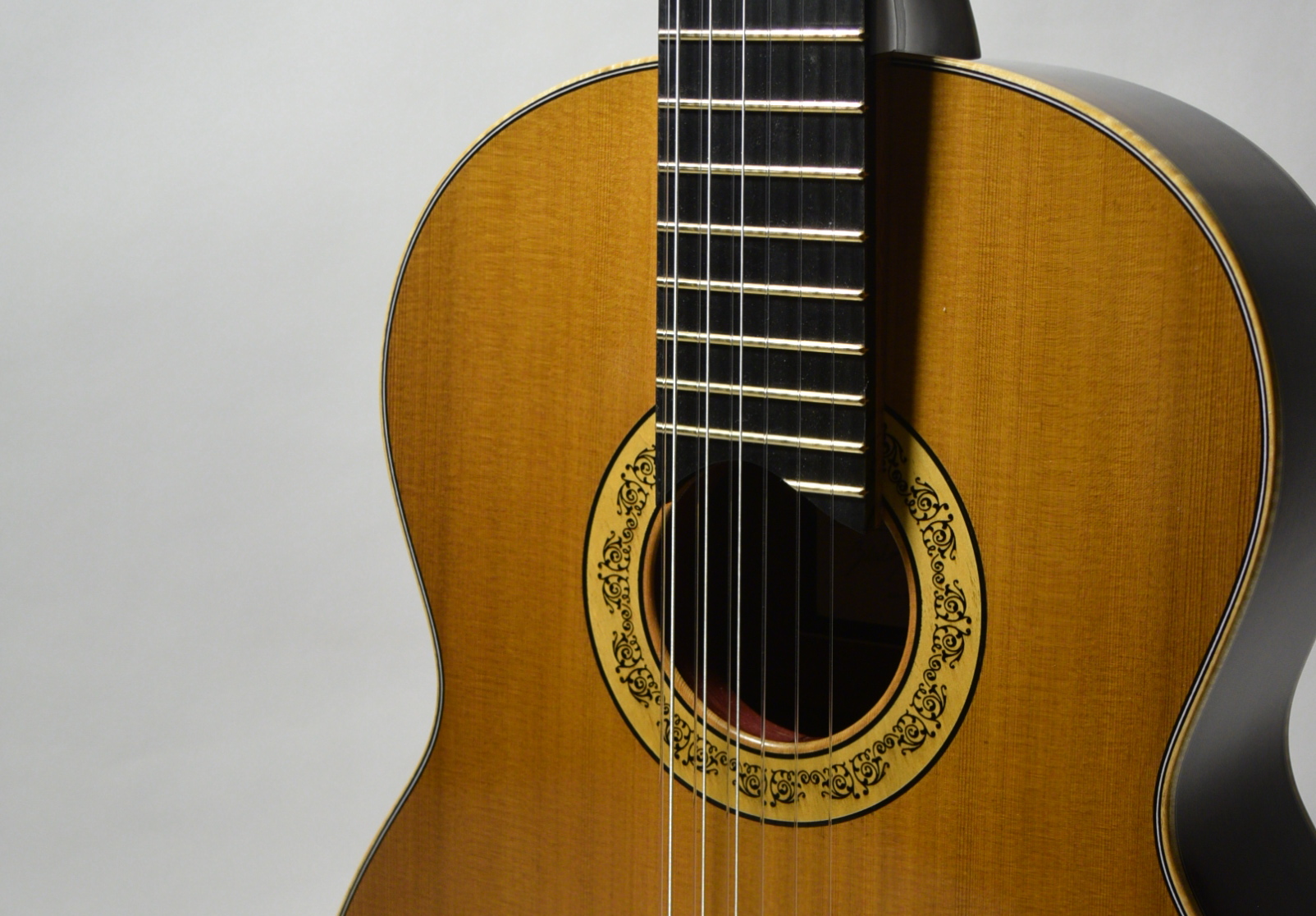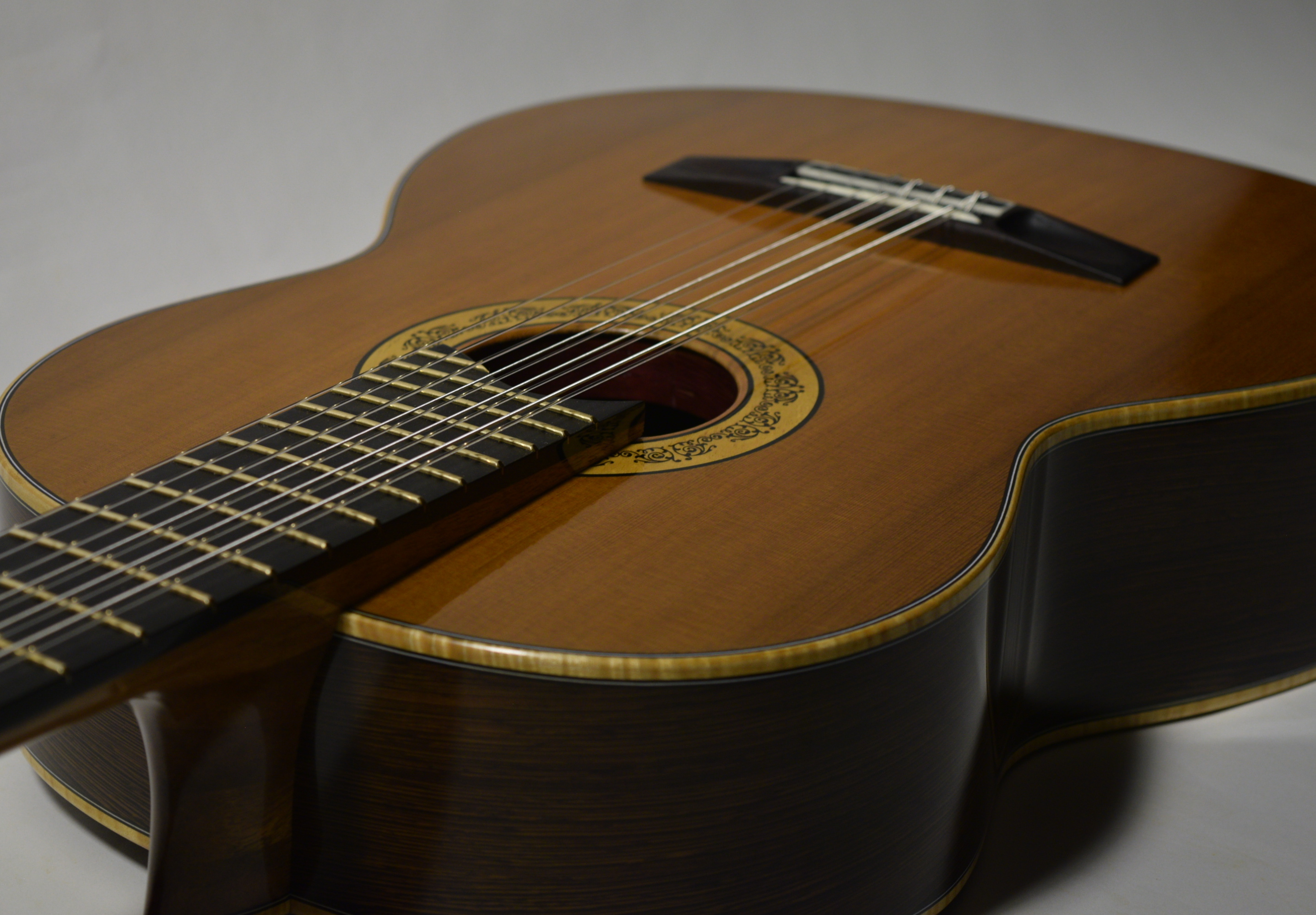 This is special project for Stanley Yates. It is a nine string guitar with the extra strings added as bass courses while the top three strings remain individual.