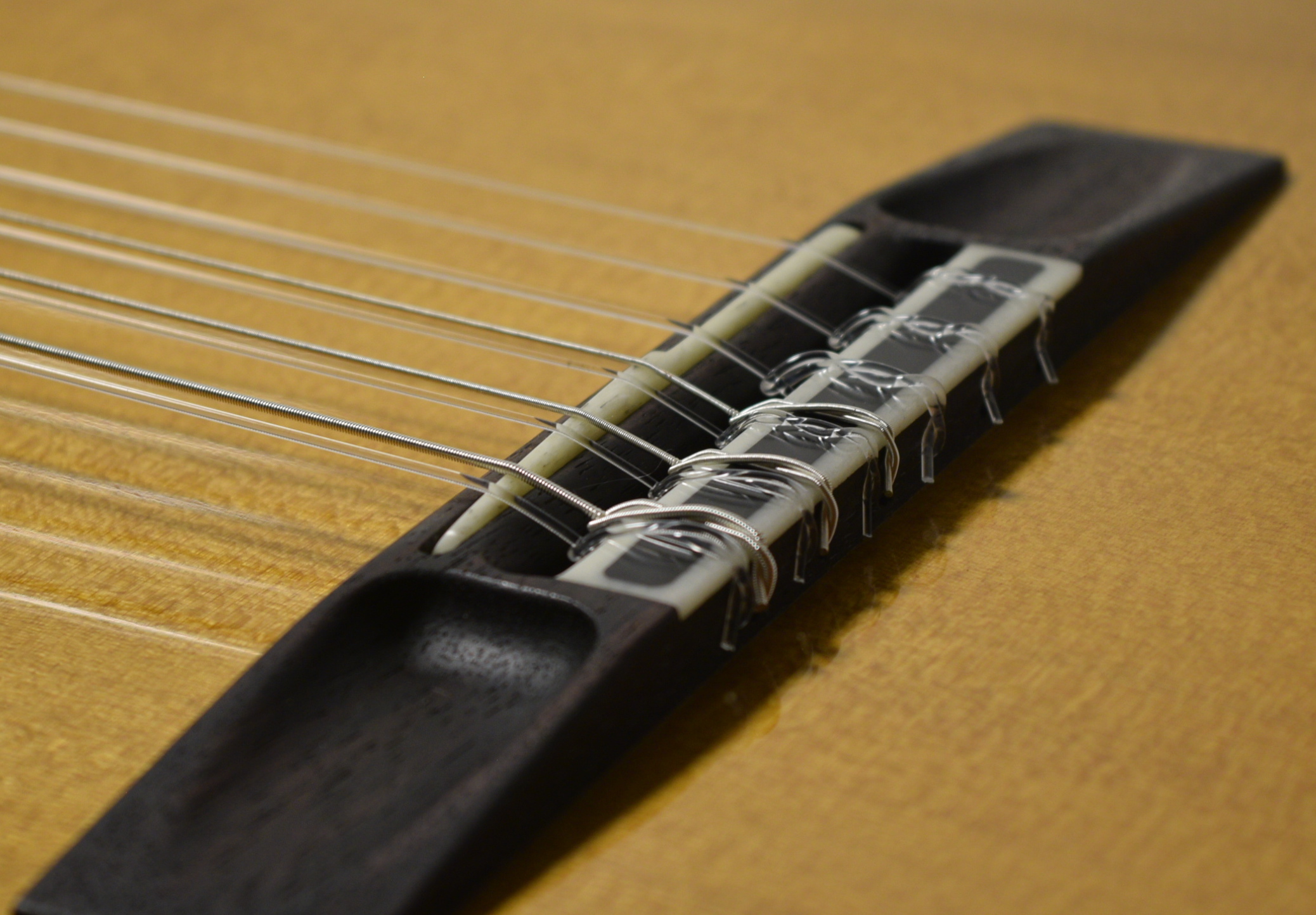 Using a traditional string spacing required some convincing on my part but in the end it worked just fine. I did resort to a traditional tie block. I can't imagine adding two holes for every string when strings are arranged in courses. You might as well write "Tear Here" on top of the tie block.