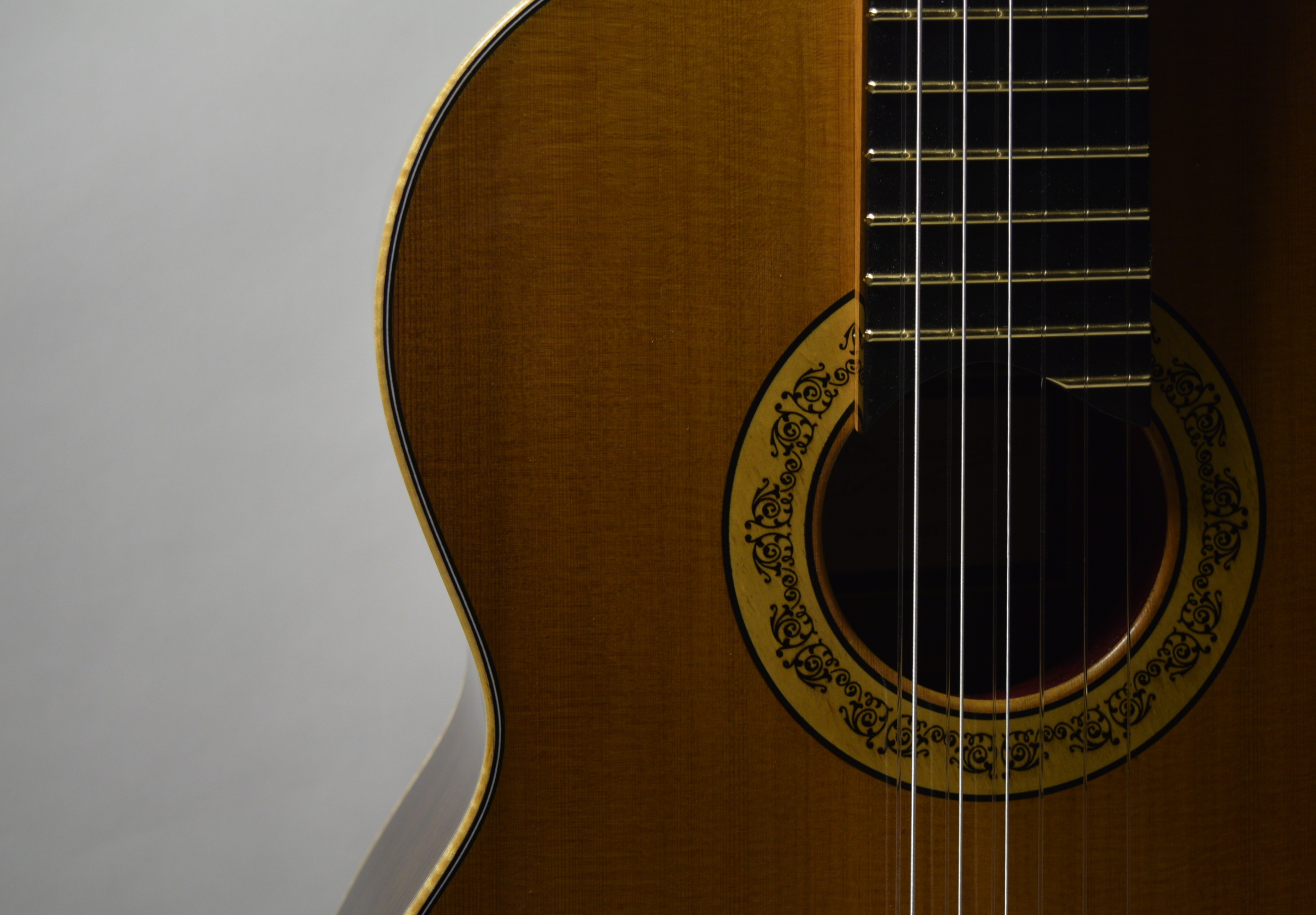 I wanted to add a Barqoue style rosette to this guitar given Baroque guitar repertoire would be its intended use. This rosette design was nabbed from some free online clipart. I took some maple plates to a trophy shop and had a guy laser cut the design and then filled the design with black resin.