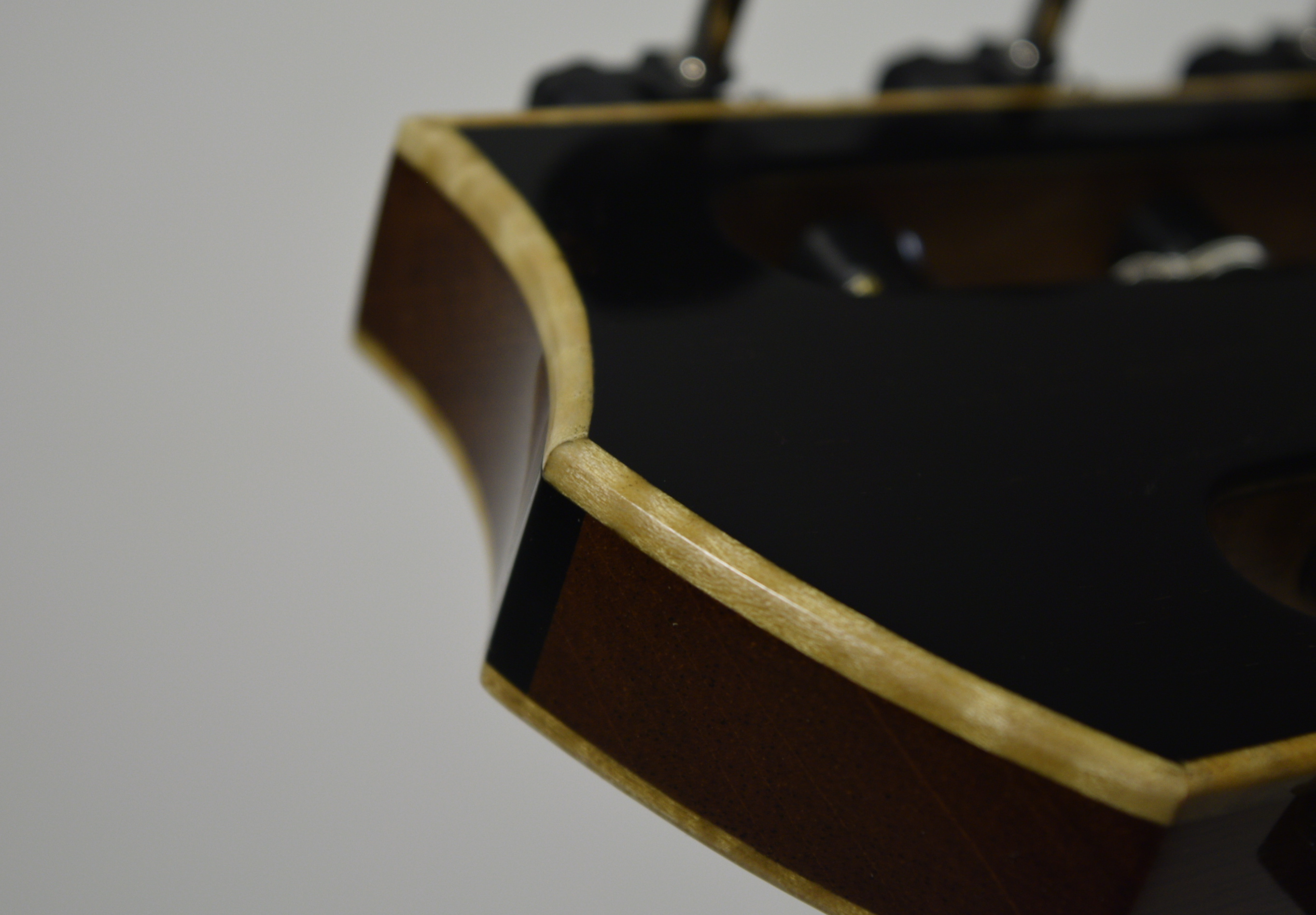 Here is a close-up of the work I did to frame this assymetrical headstock design.