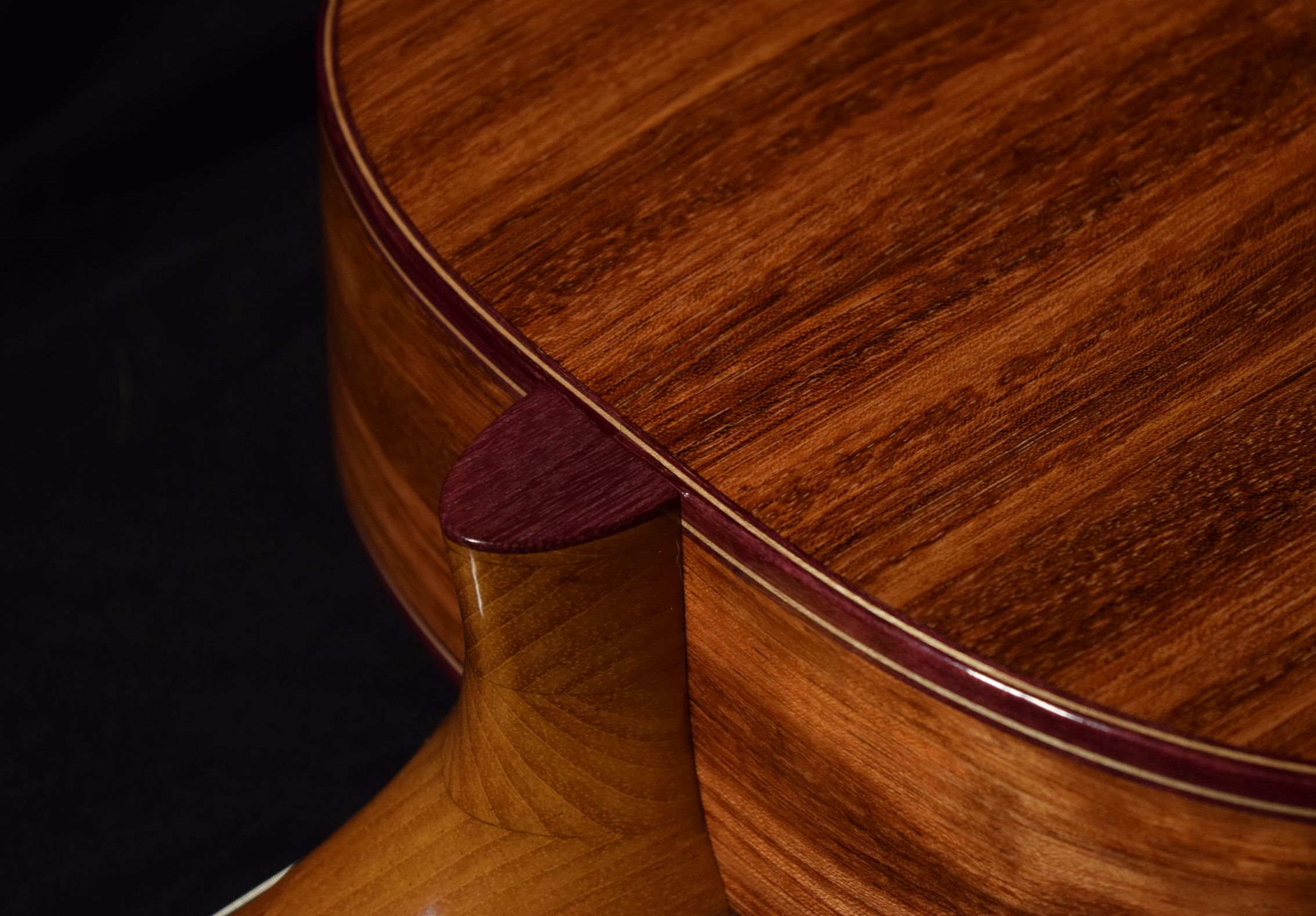 The binding is purple heart and the purfline is a sandwhich of purple heart and maple remaining from my first 20 guitars.