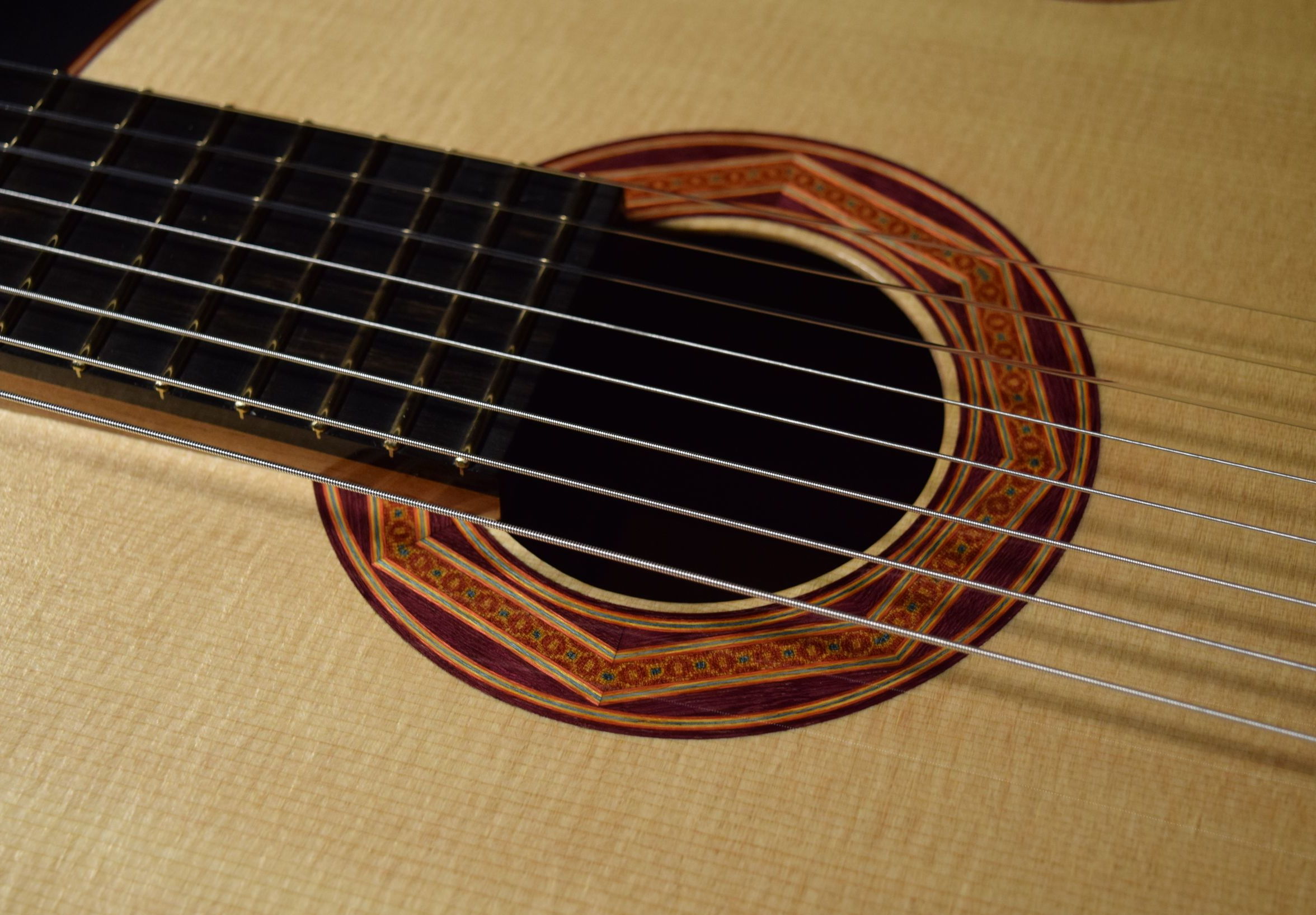 This guitar was French polished with a traditional 19th century spirit varnish recipe that makes my shop